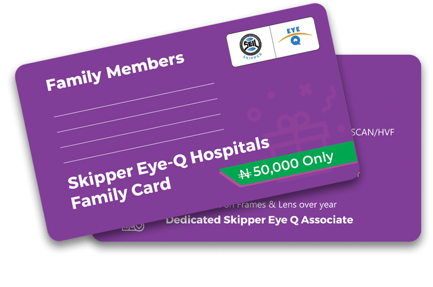 The FAMILY CARD is intended for the user who wants their family members eye care to be taken care by the Skipper Eye-Q.